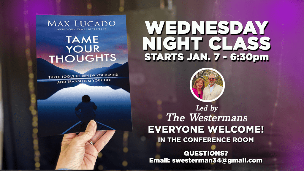 Based on Max Lucado’s teaching—learn three practical tools for renewing your mind. Led by the Westermans in the Conference Room.