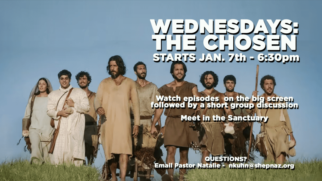 Watch episodes from The Chosen followed by a short group discussion. Meets in the Sanctuary.